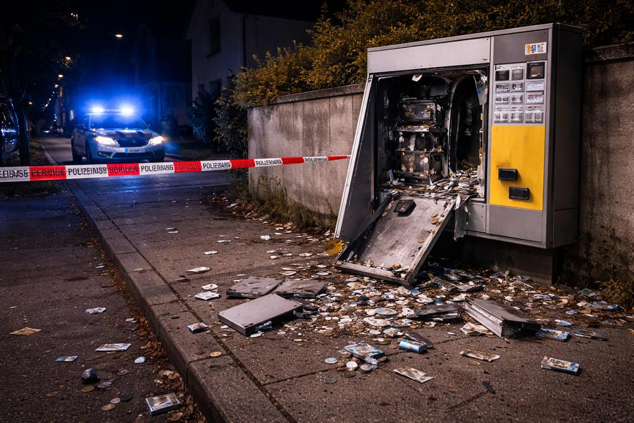 Am Dienstag, 21. April 2026, gegen 02:30 Uhr, sprengte ein bislang unbekannter Täter in der Egerstraße in Sinsheim einen Zigarettenautomaten. Das teilte das Polizeipräsidium Mannheim mit.